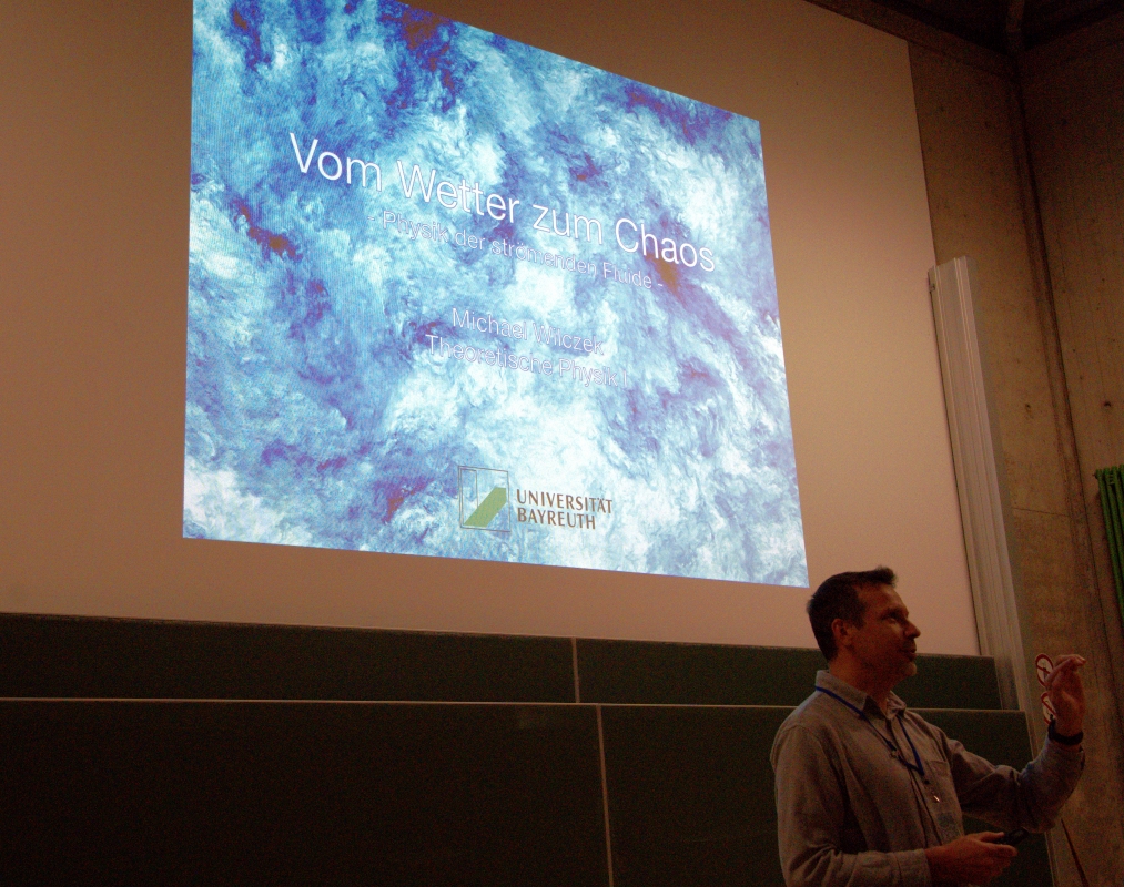| ab 19.30 Uhr | Vortrag: „Vom Chaos zum Wetter – Physik der strömenden Fluide“ |